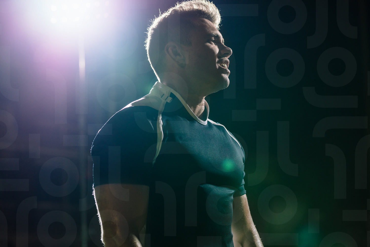 Rugby player on field under lights