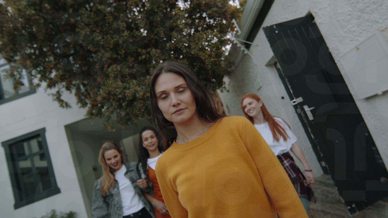 Woman with friends walking outdoors