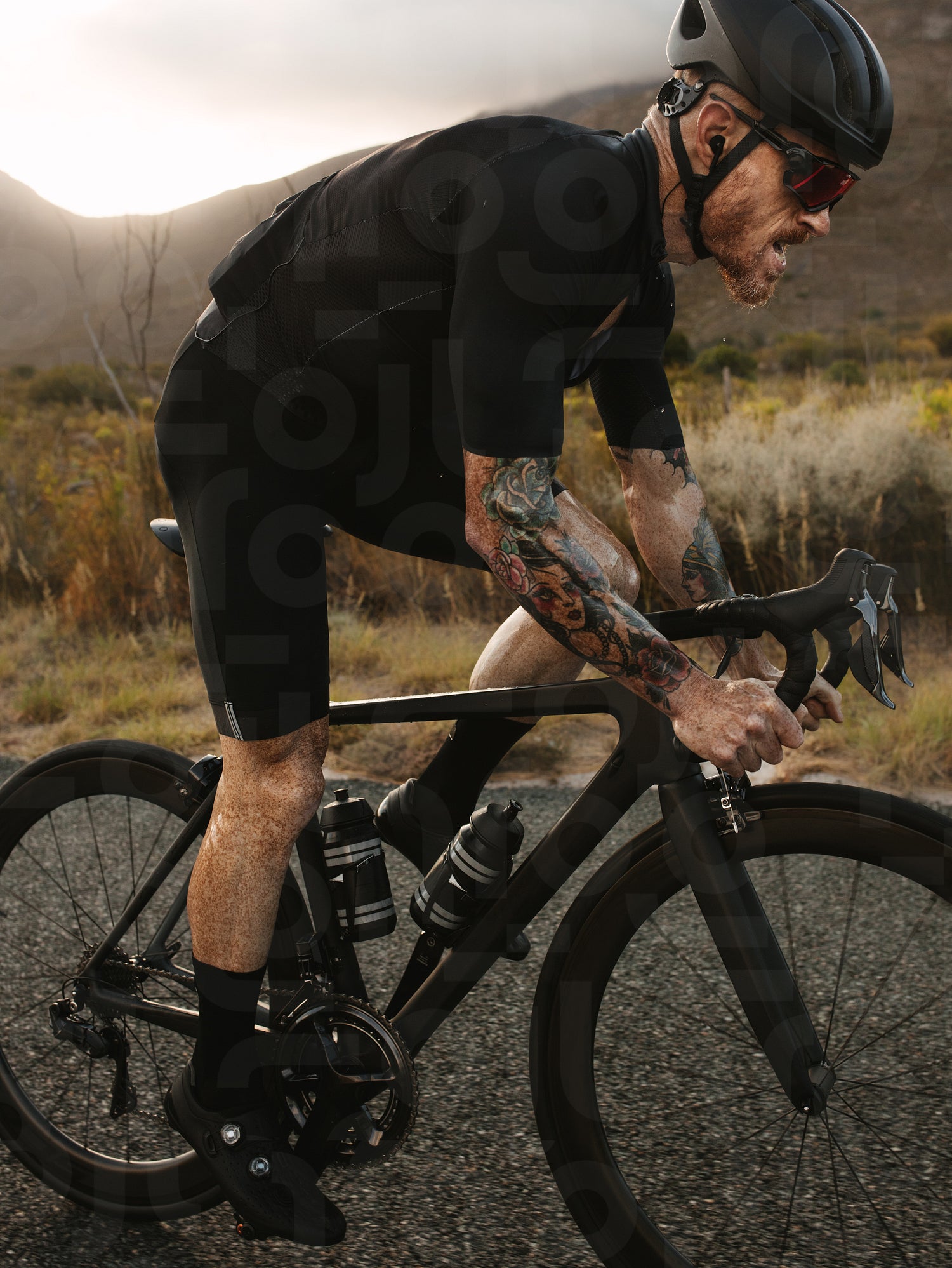 Cyclist sprinting on highway road