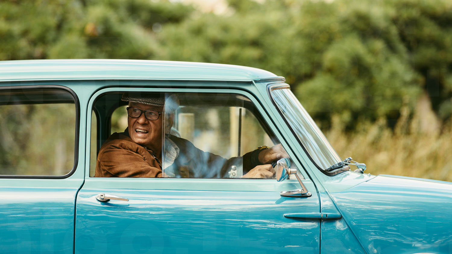 Old man driving a classic car