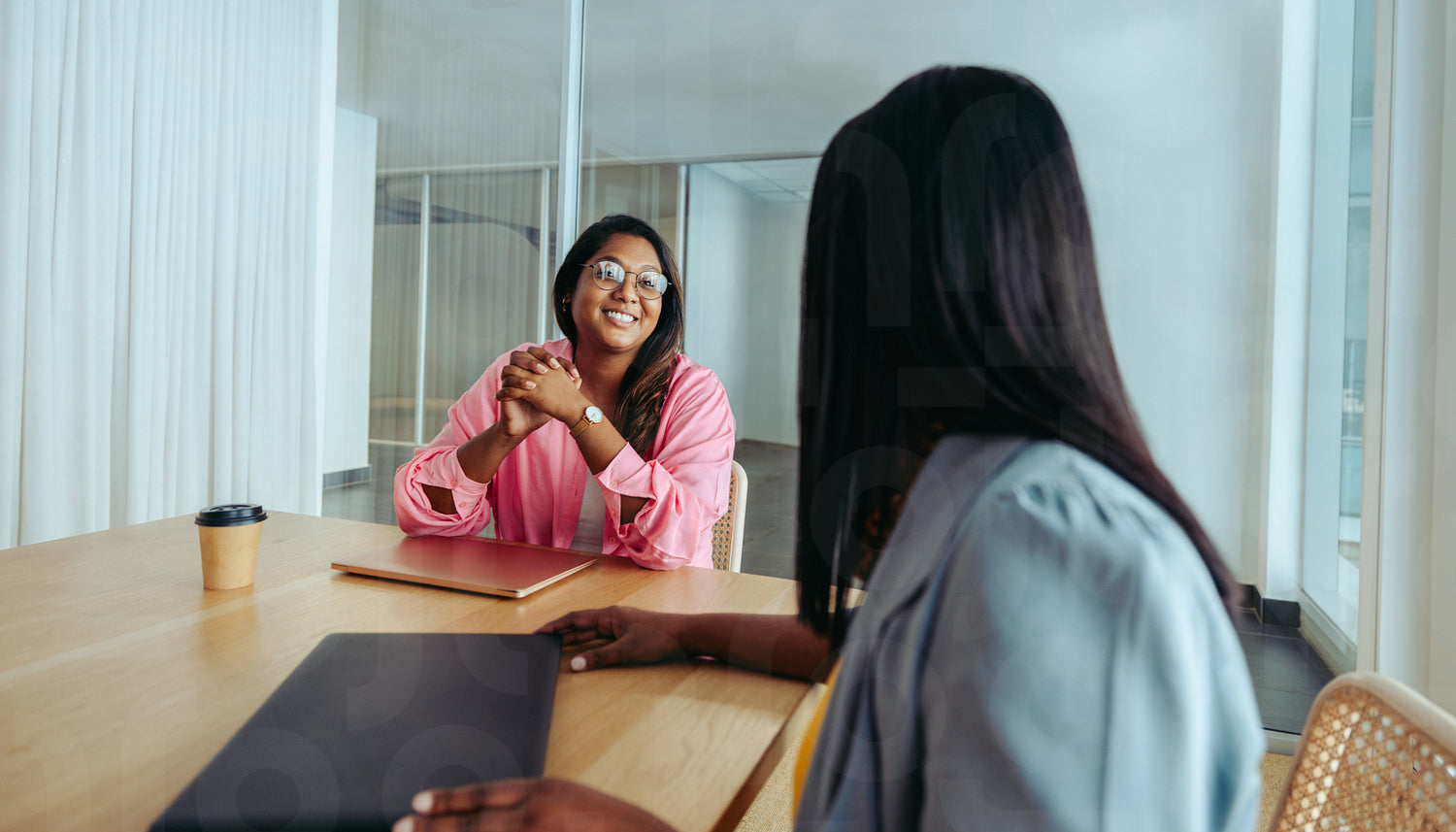 Interior design consultation with two professionals in a minimalistic office setting