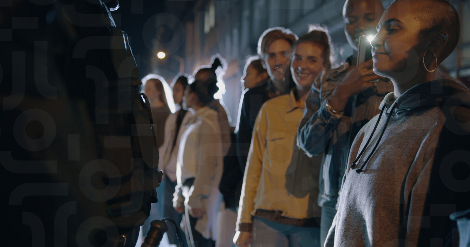 Woman embraces a cop that patrols during the protests as a sign of peace. Group of people filming a woman hugging a policeman during the anti-government demonstration.