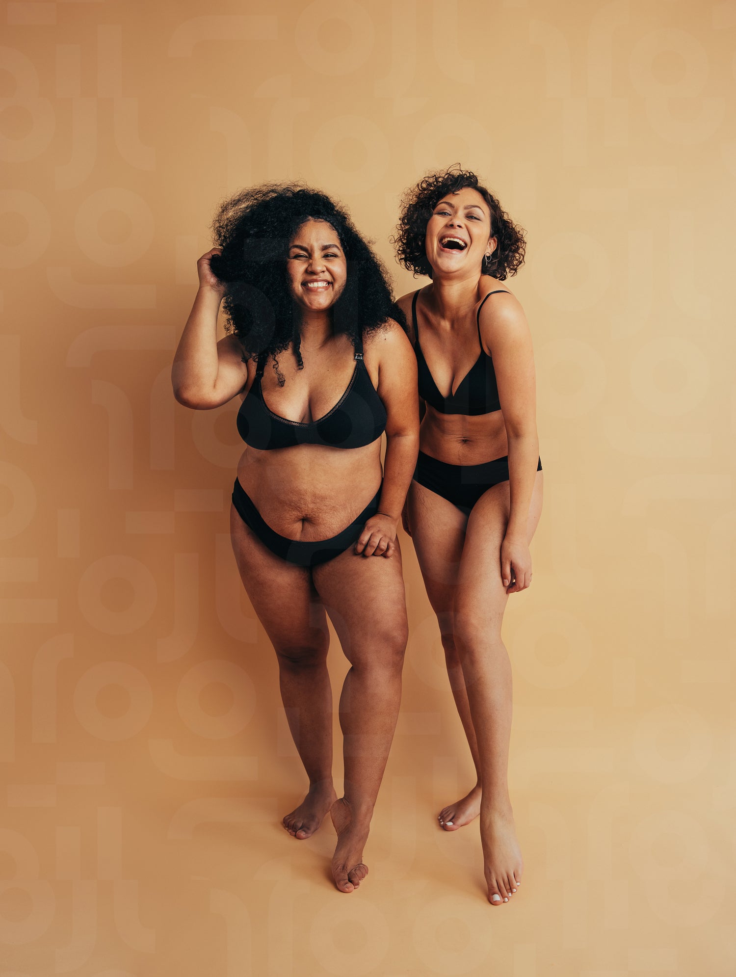 Smiling mothers standing together. Proud mothers with postpartum bodies.