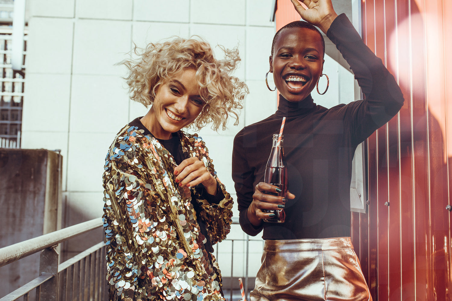 Beautiful female friends enjoying together on weekend. Mixed race female friends having a great time together.