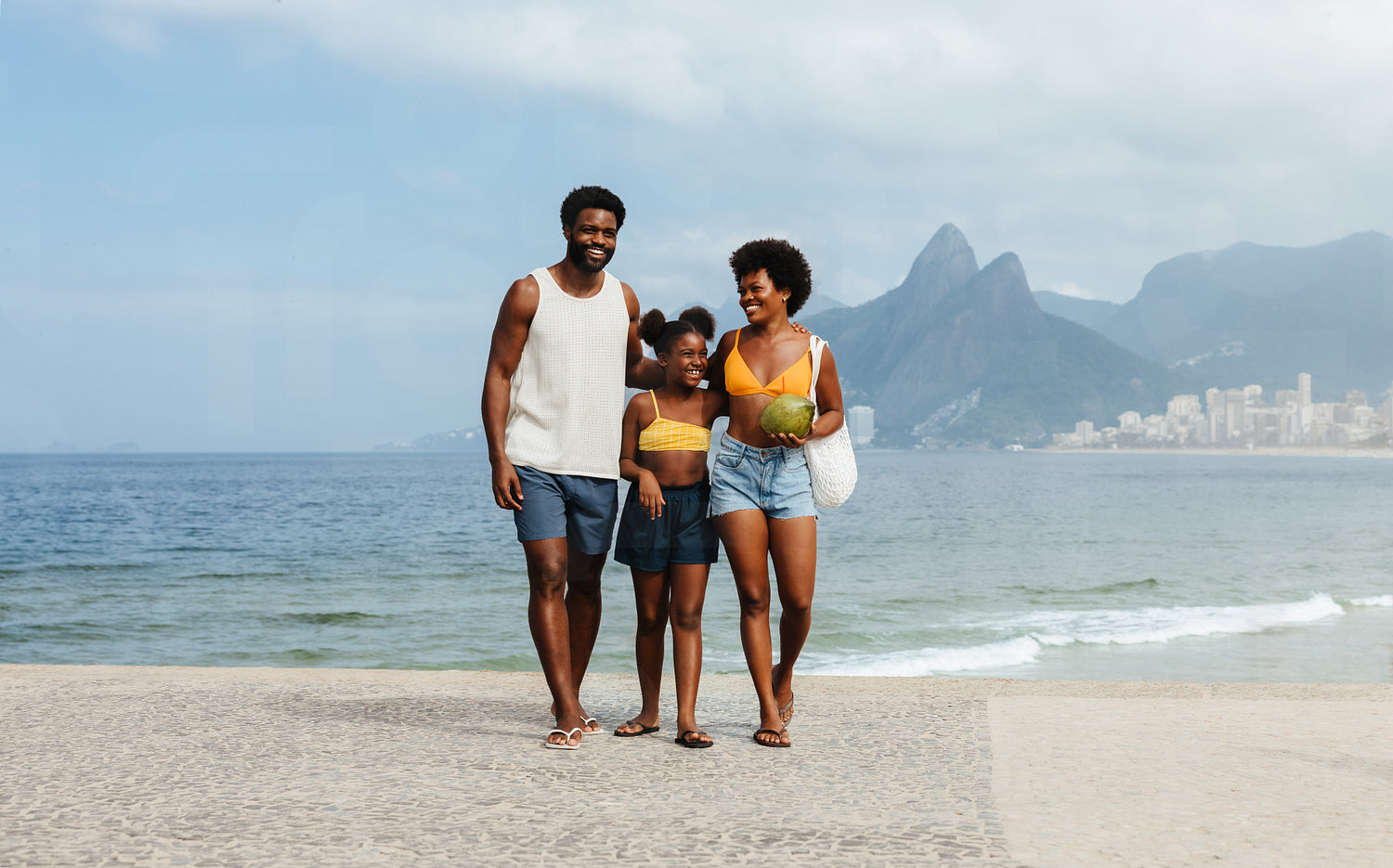 Happy family enjoying vacation by the sea in Rio de Janeiro