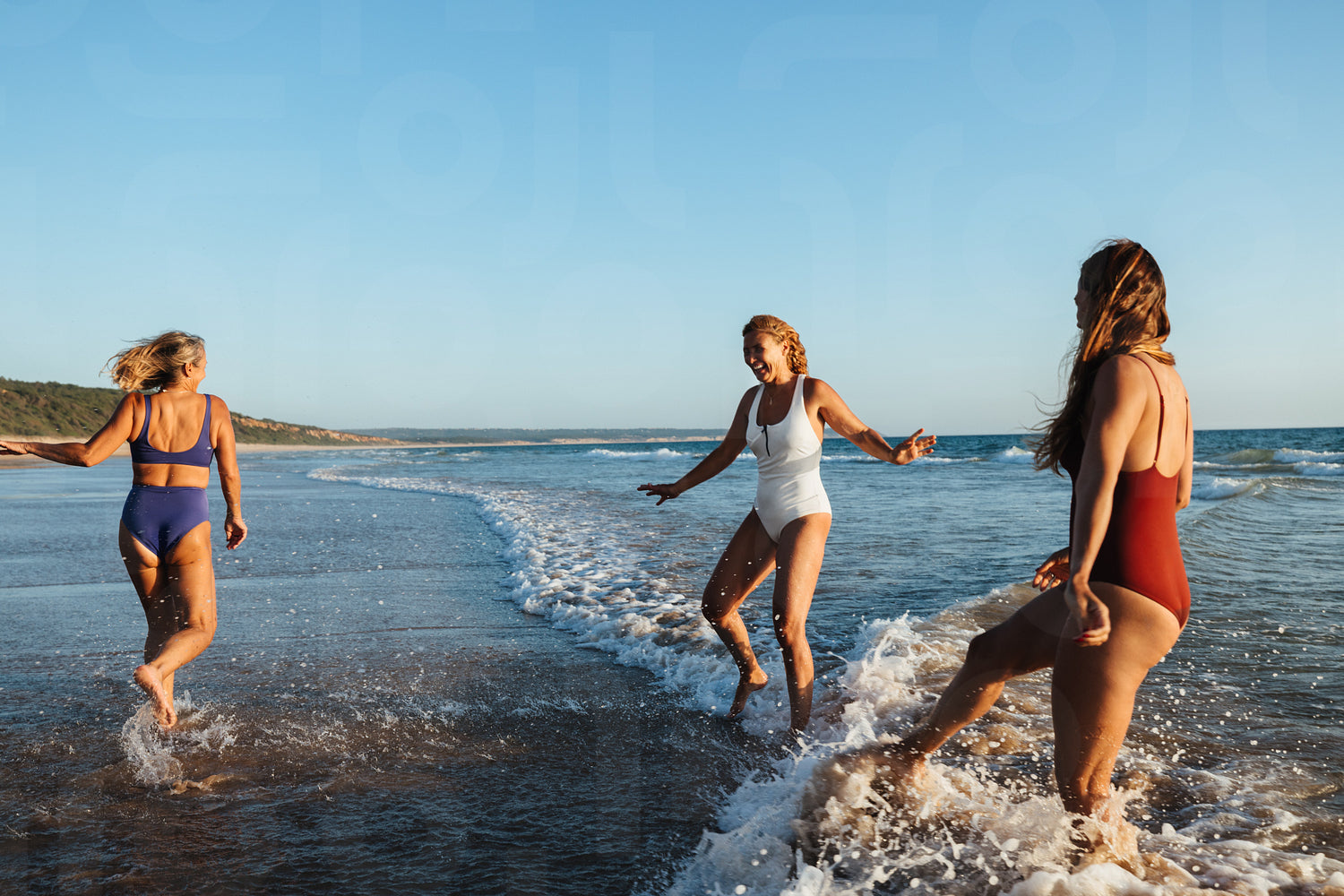 Friends enjoying playful moments by the ocean, splashing water and sharing laughter in a vibrant beach setting under the sun, capturing the essence of carefree summer fun and joyful memories.