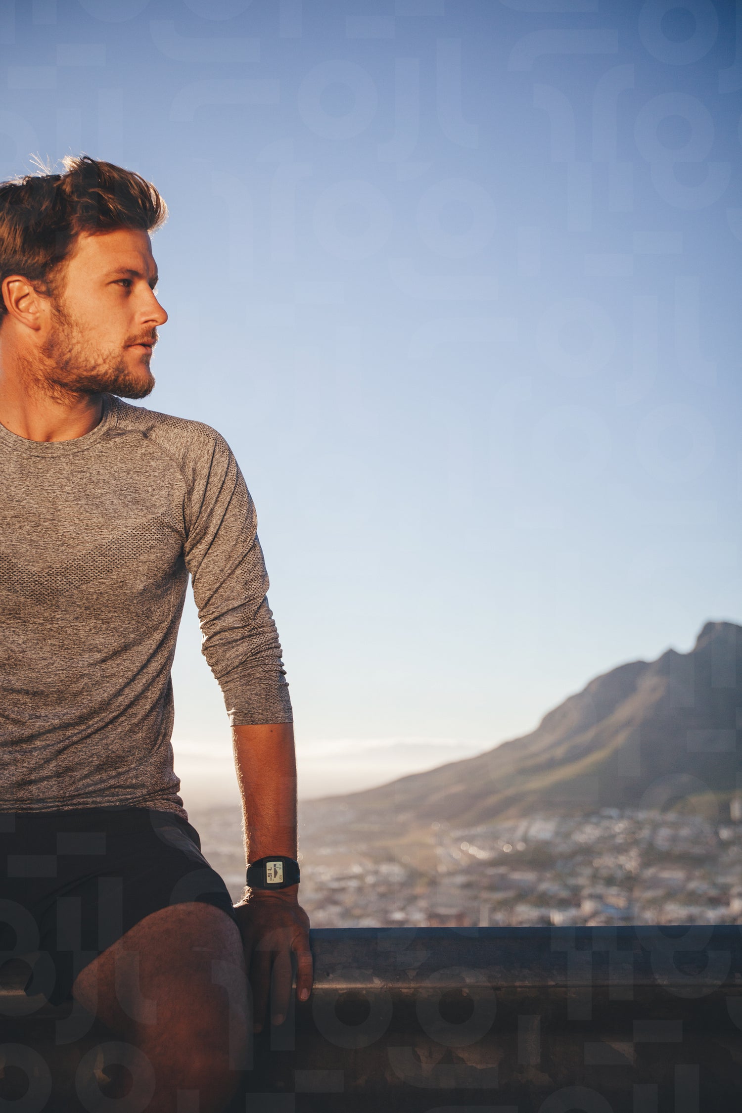Fitness male athlete resting after outdoors training. Young man relaxing after morning run looking away at copy space.