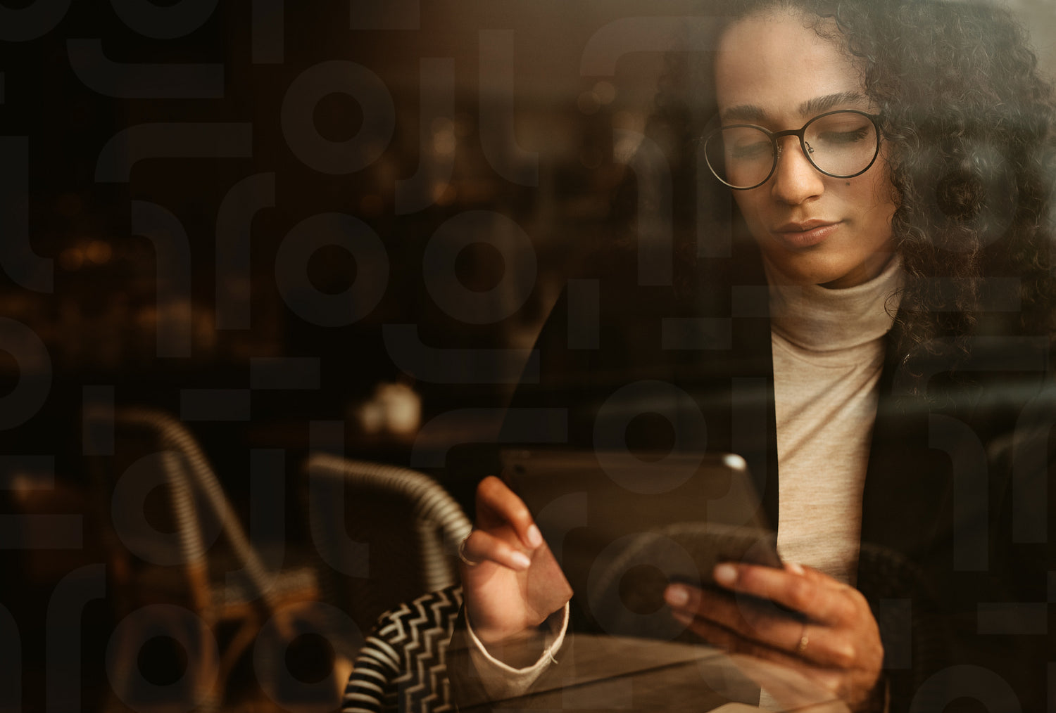Businesswoman sitting at a cafe using digital tablet. Woman in a coffee shop with reading something in her digital tablet.