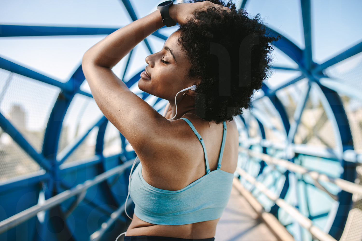 African woman relaxing after workout
