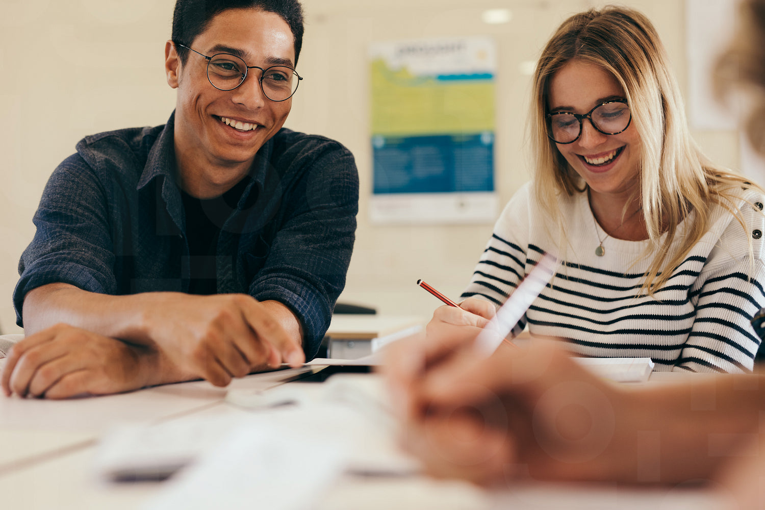 Group of students doing school assignment in classroom