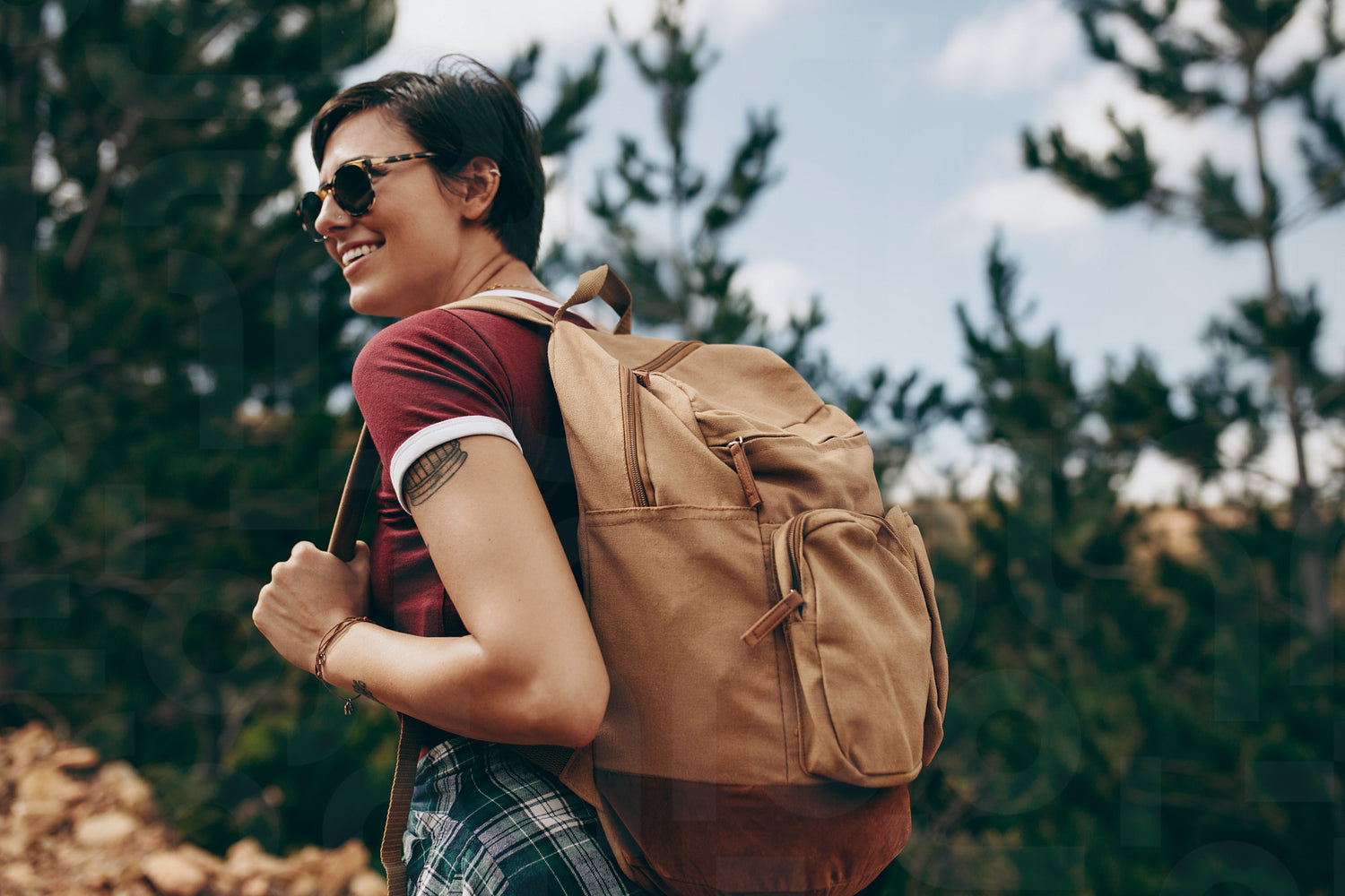 Woman on a holiday trekking in the woods
