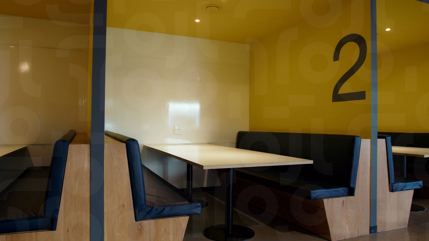 Creative coworking space interior design. Empty business space with desks and seats. Working and meeting areas in a coworking office.
