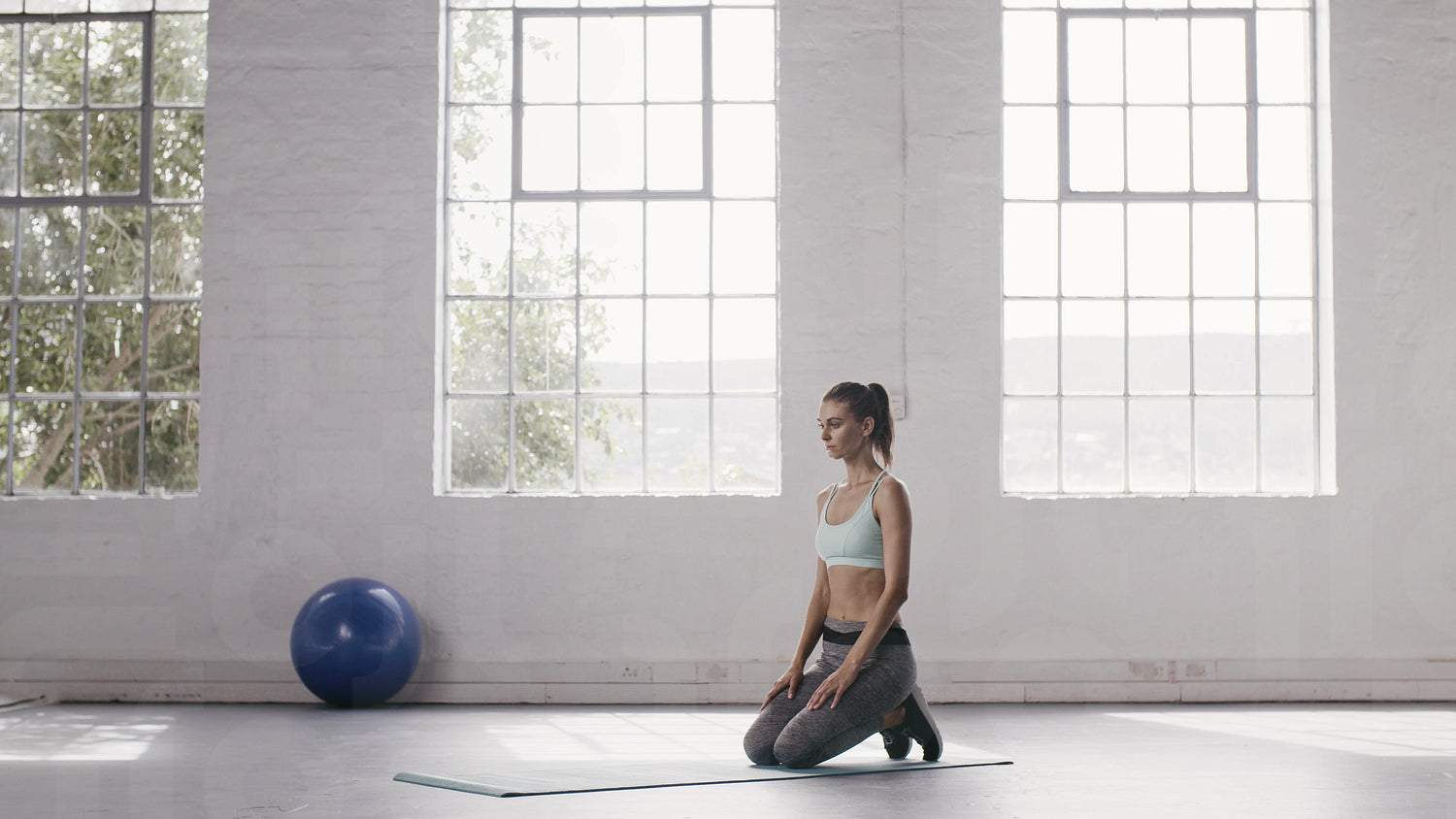 Fitness woman doing plank with alternating leg lifts at gym. Healthy woman doing core workout at fitness center.