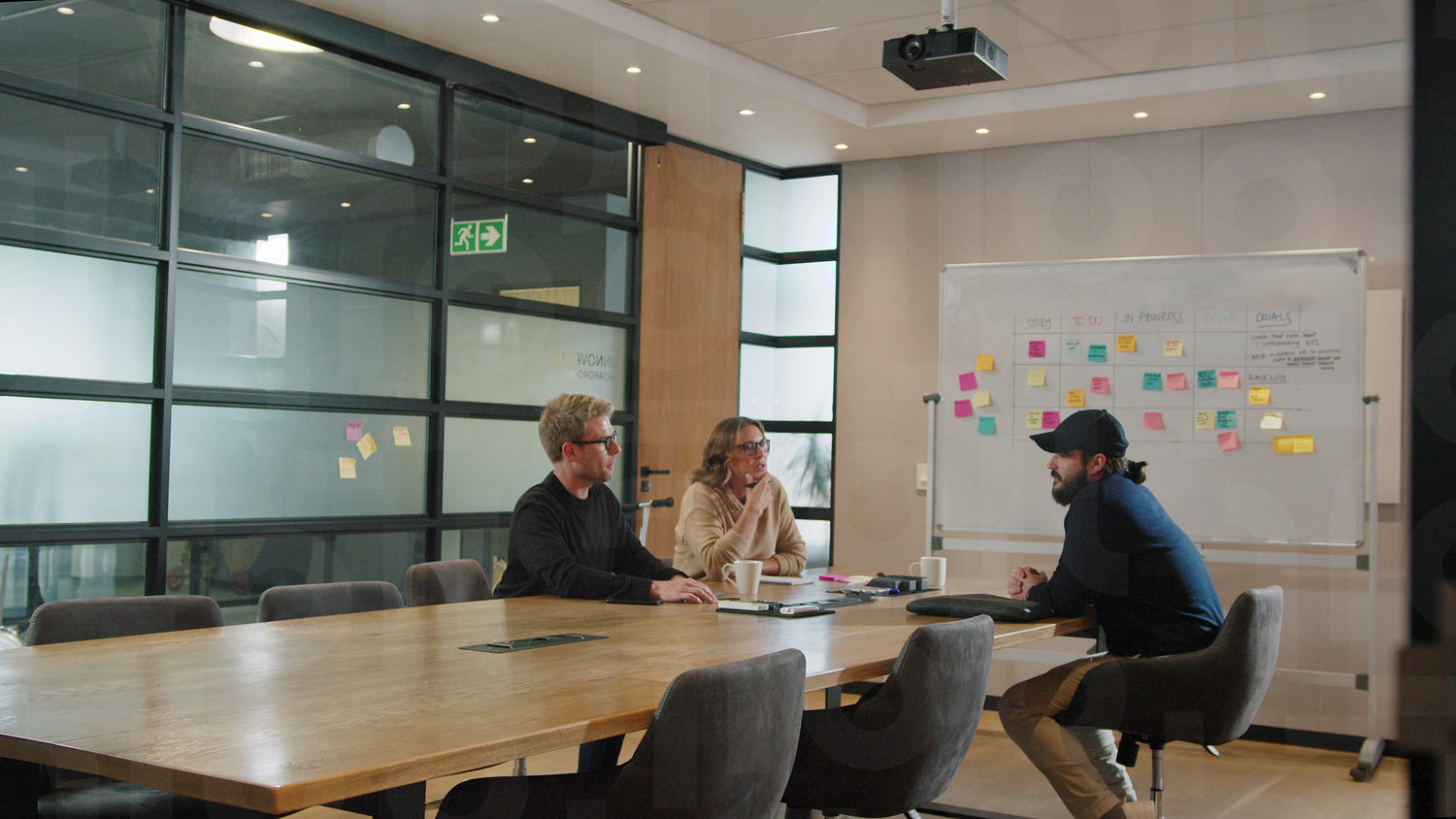 Group of business people sitting in a boardroom and having a discussion. Team of creative professionals having a meeting in an office. Brainstorming and scrum project management.