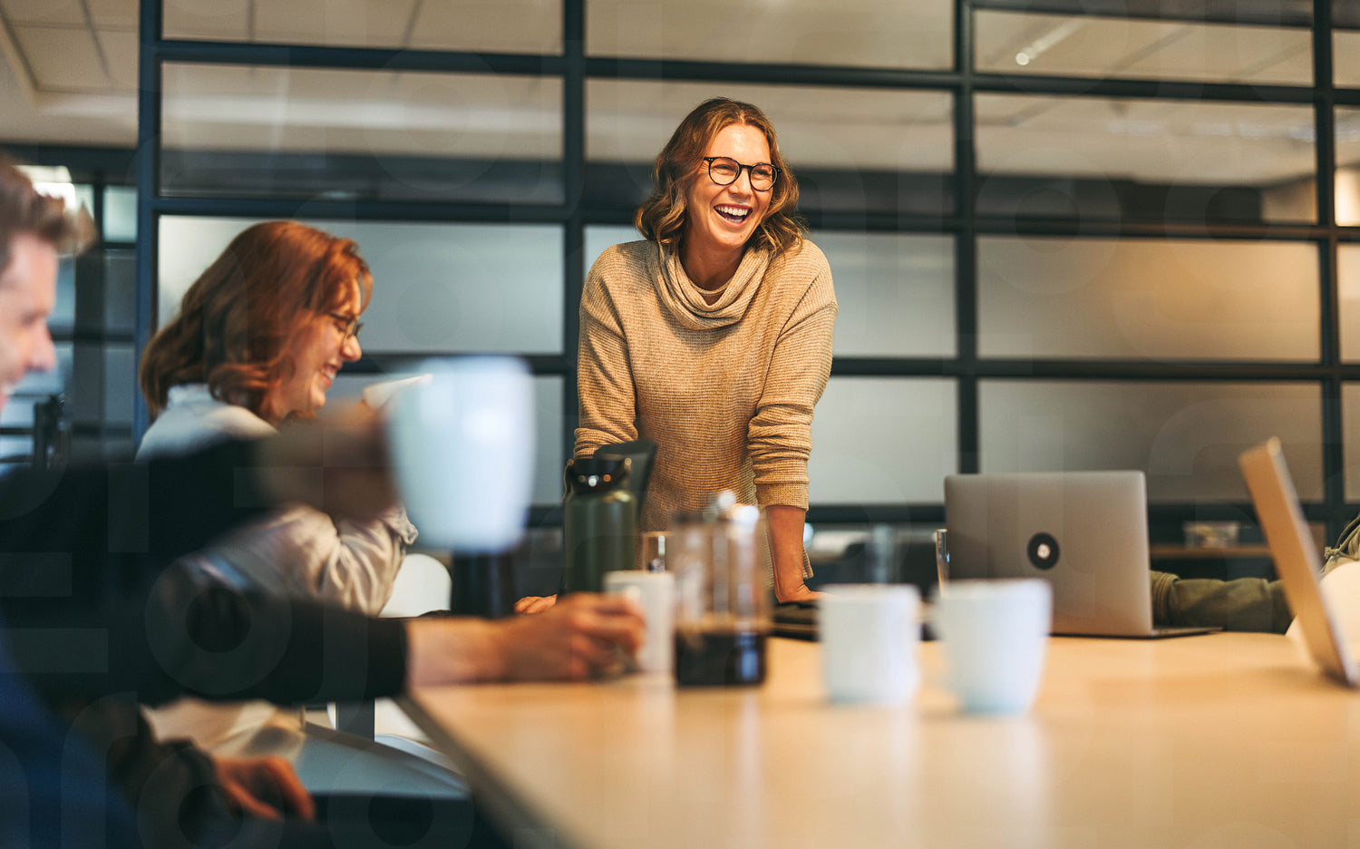 Diverse professionals engage in a creative discussion, showcasing teamwork and collaboration in a bustling office boardroom. Led by a confident leader, they utilize a scrum process to manage a successful project in a tech company's dynamic workplace.