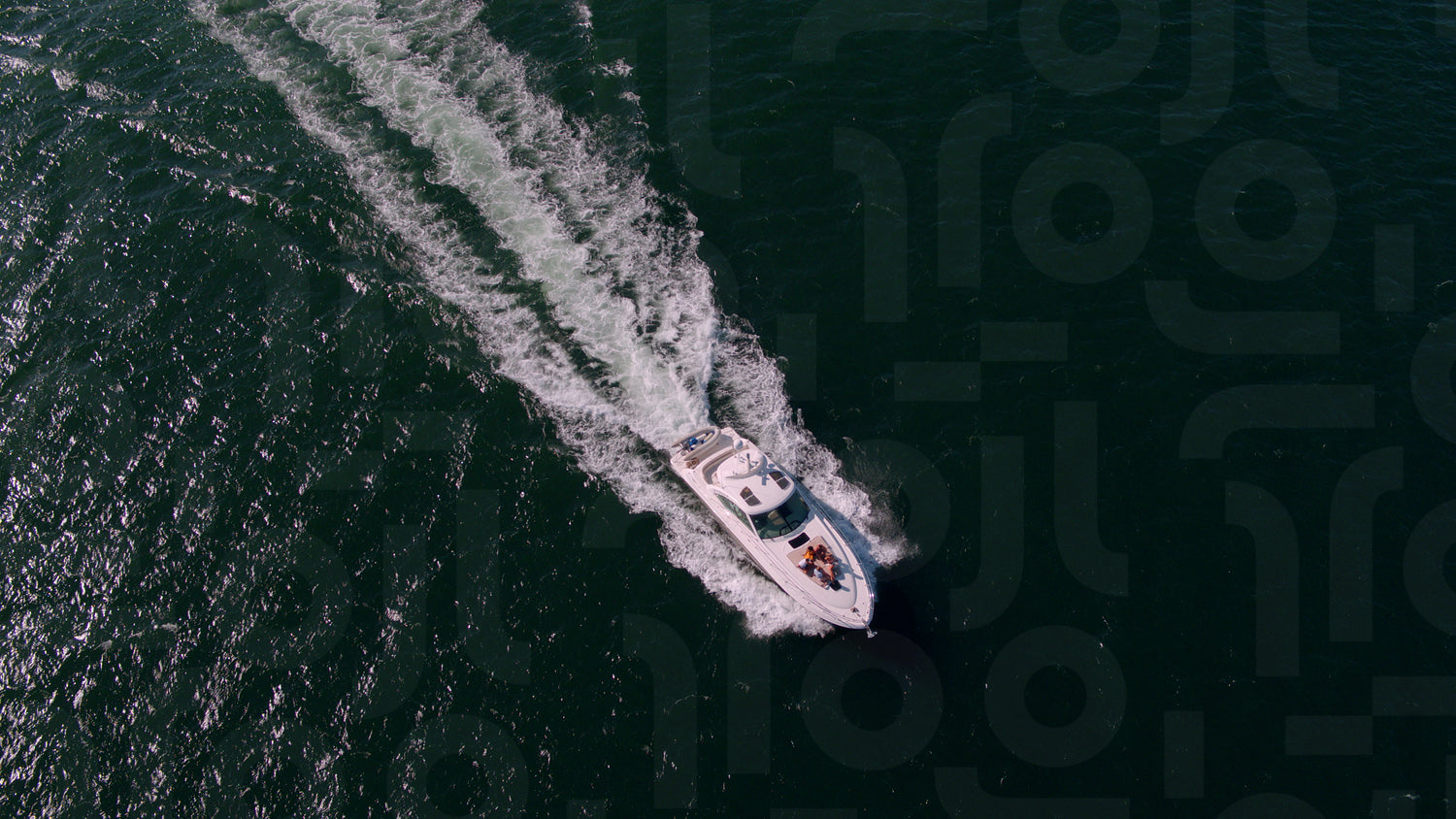 View from drone of young people partying on a yacht deck. Group of friends on a yacht deck having party.