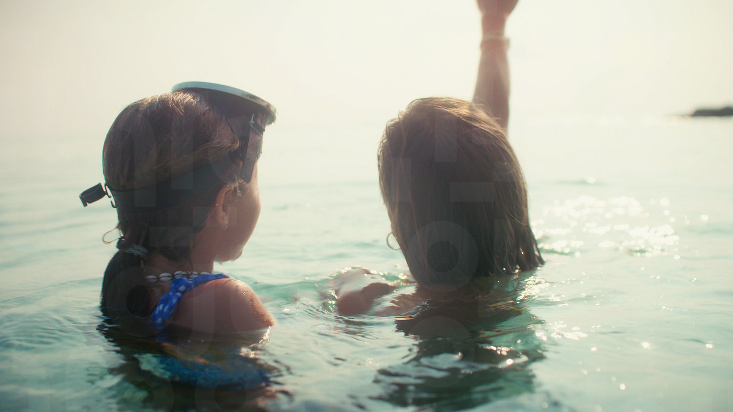 Mother and daughter share happy vacation moments snorkeling together in the clear tropical ocean