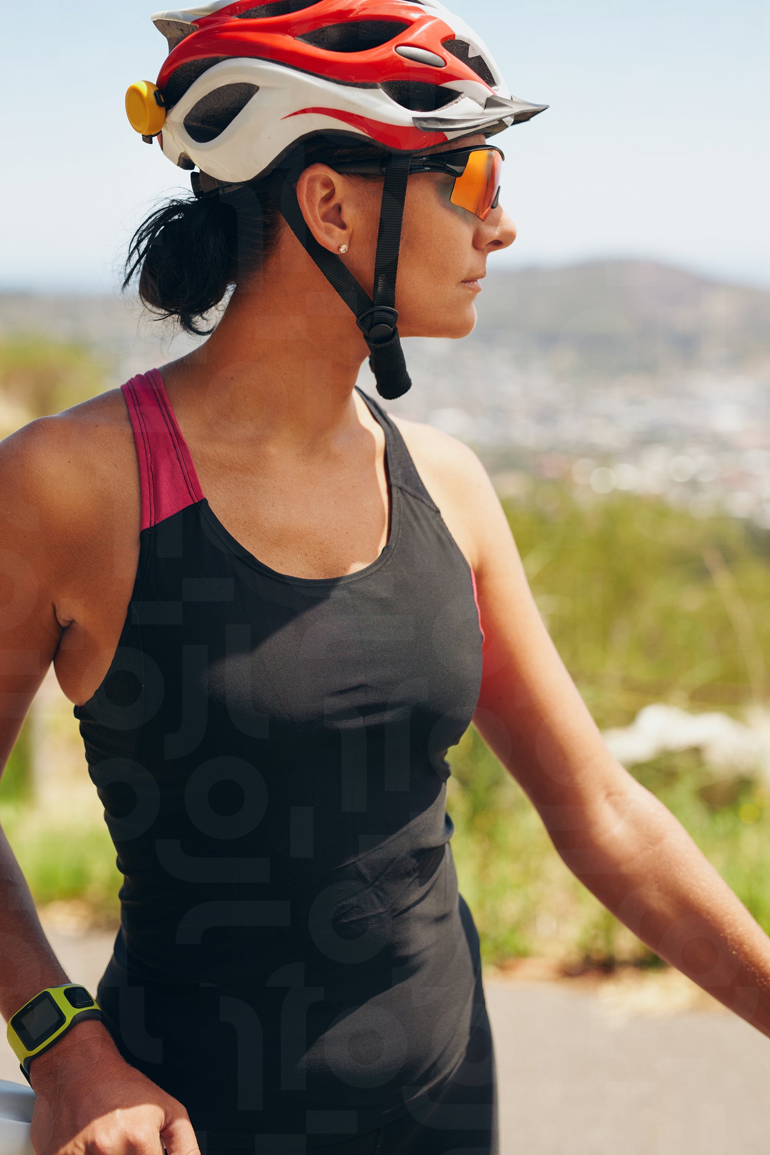Female cyclist looking away