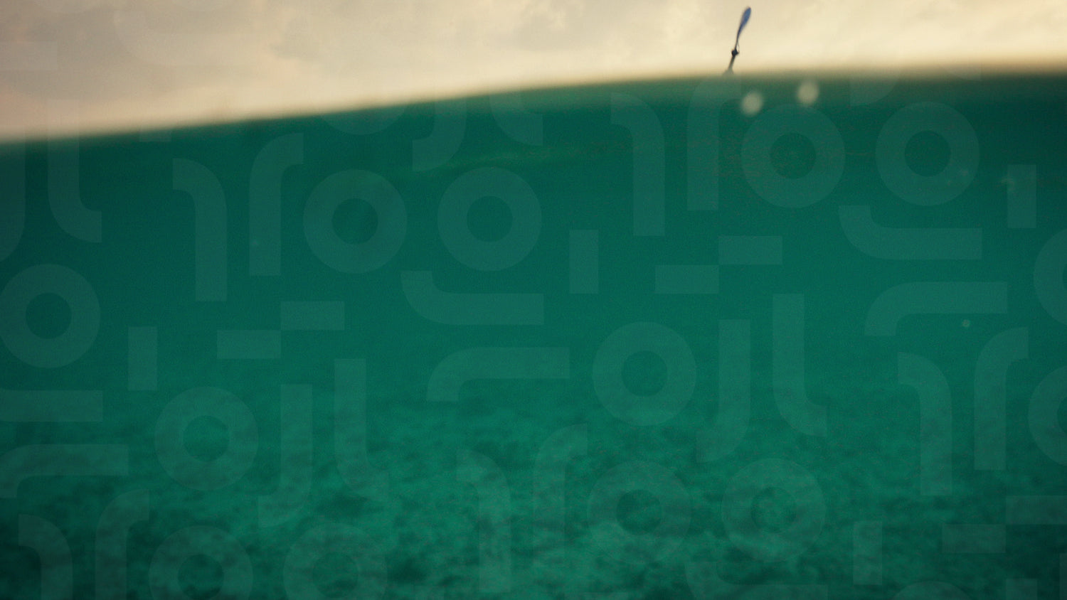 A captivating split view captures a joyful family paddling transparent kayaks on crystal clear tropical ocean waters. The serene scene highlights shared vacation adventure.