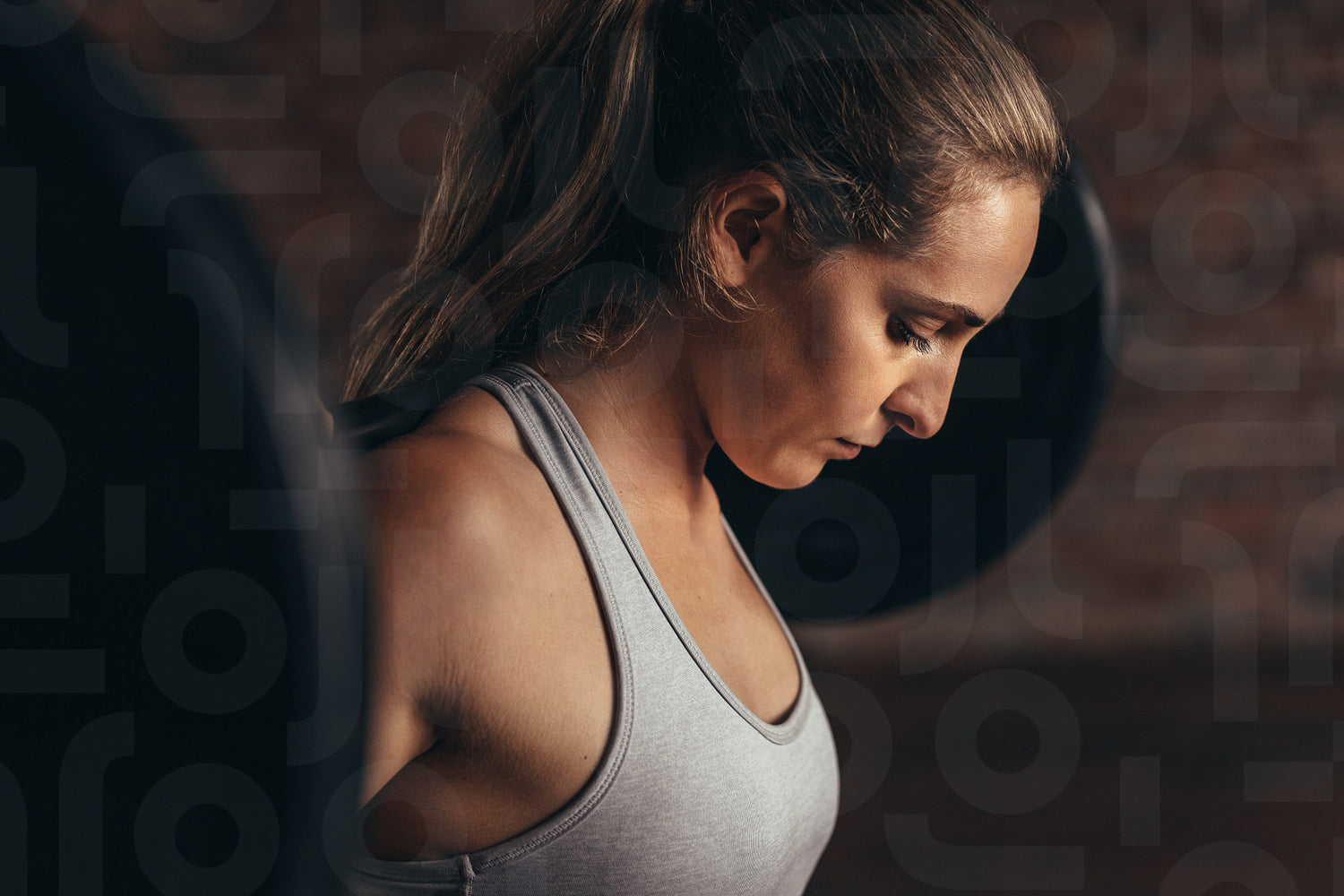 Fit woman lifting a barbell at the cross fit gym. Young female working out at gym with heavy weights.