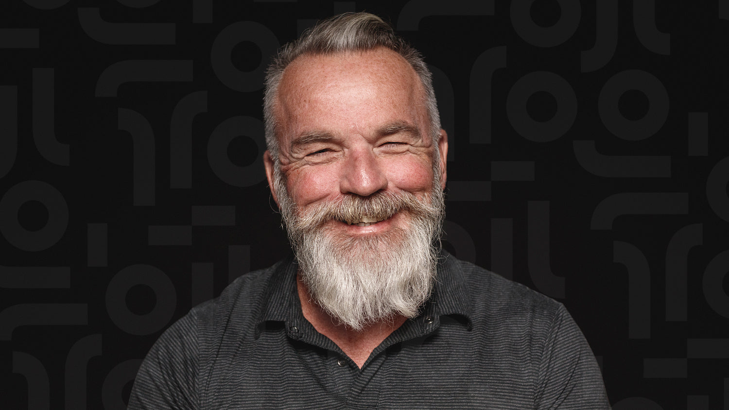Close up of smiling senior man with a white beard. Portrait of a senior man isolated on black background.