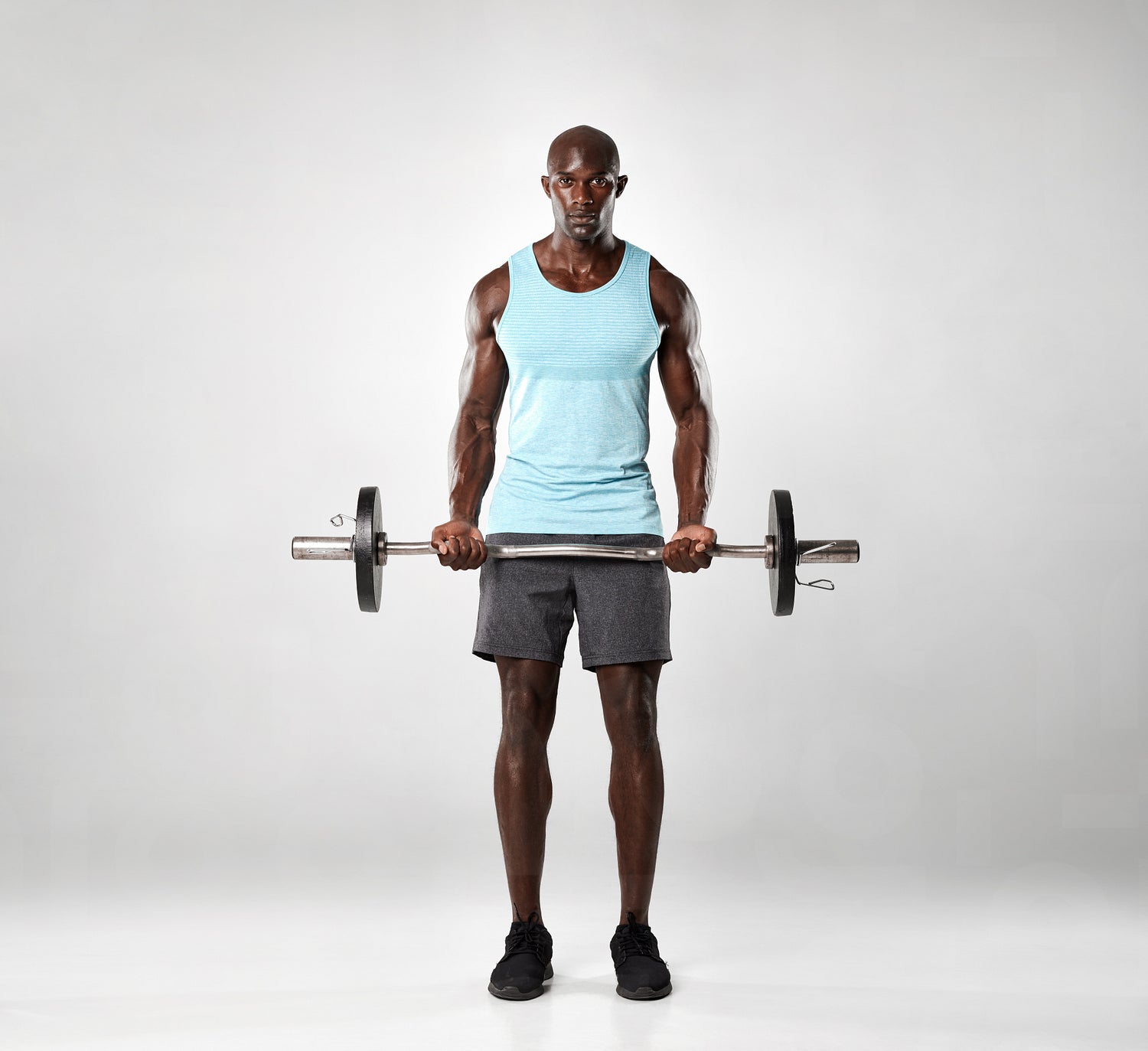 African male exercising with barbell