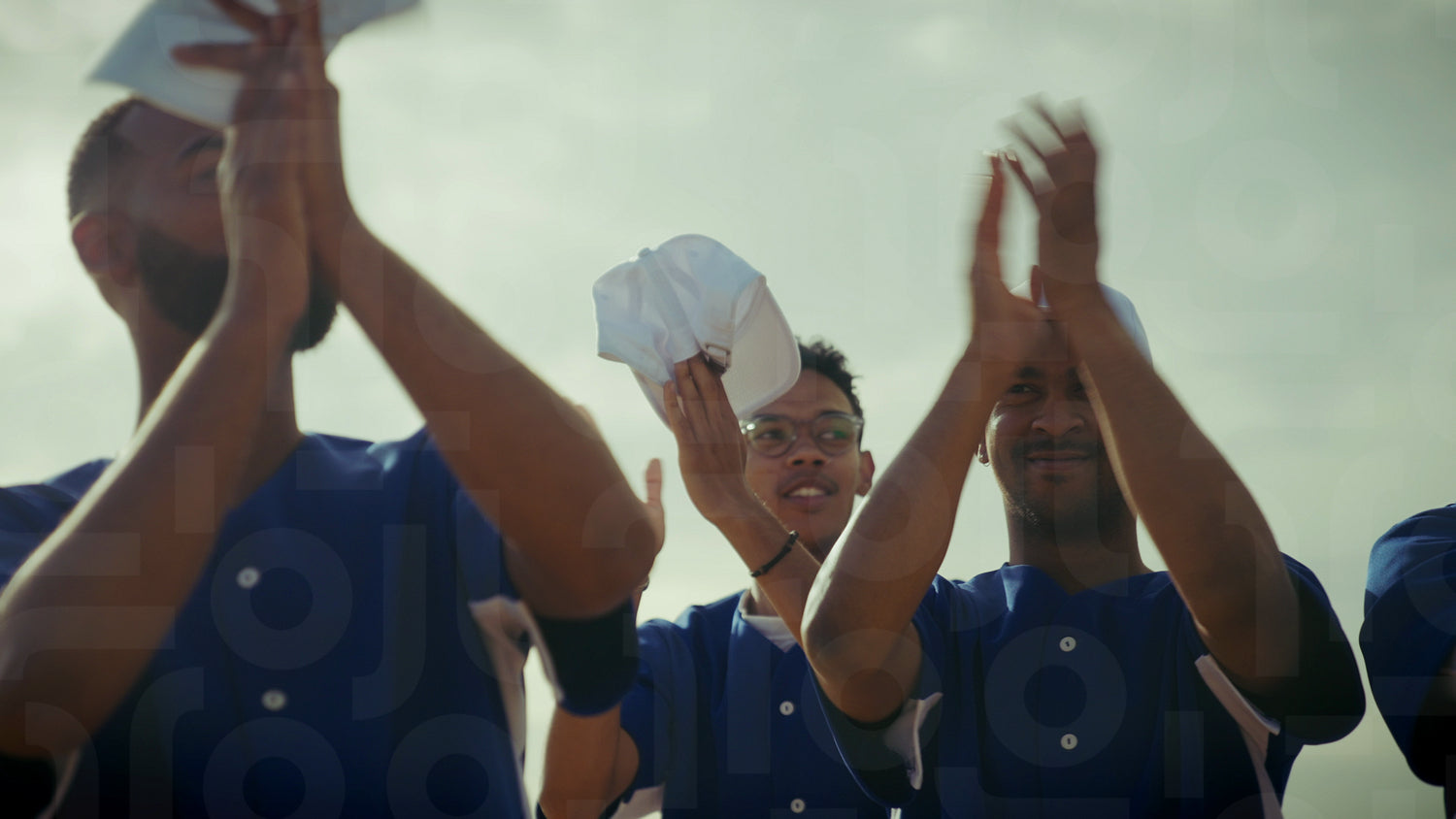 Baseball team celebrates a hard-fought victory. Players clap and cheer, displaying joy and unity after a successful game. The catcher shares in the triumph.