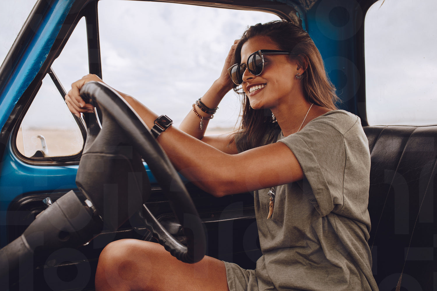 Beautiful woman driving a truck