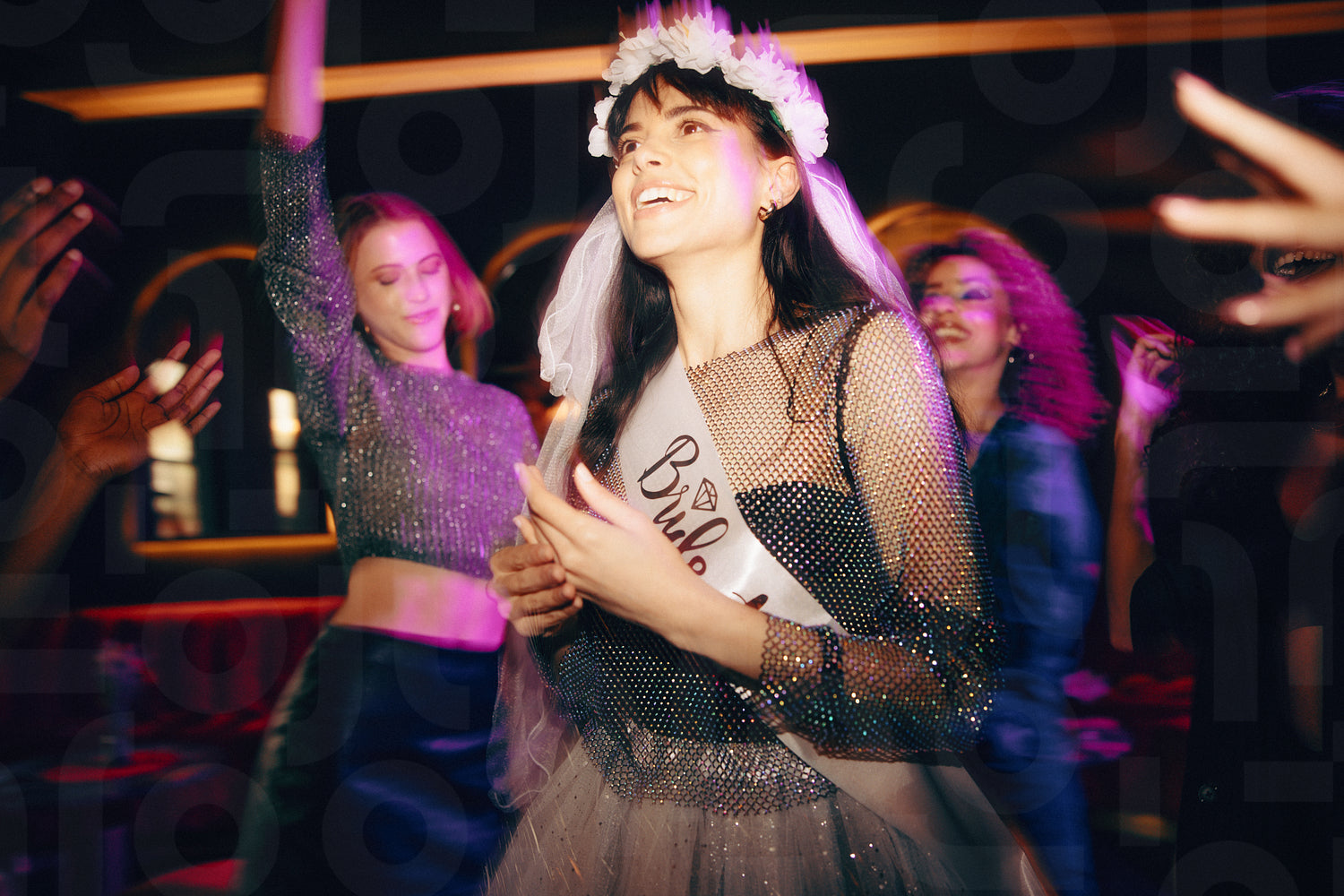 Bride-to-be celebrating at her bachelorette party with friends in a nightclub