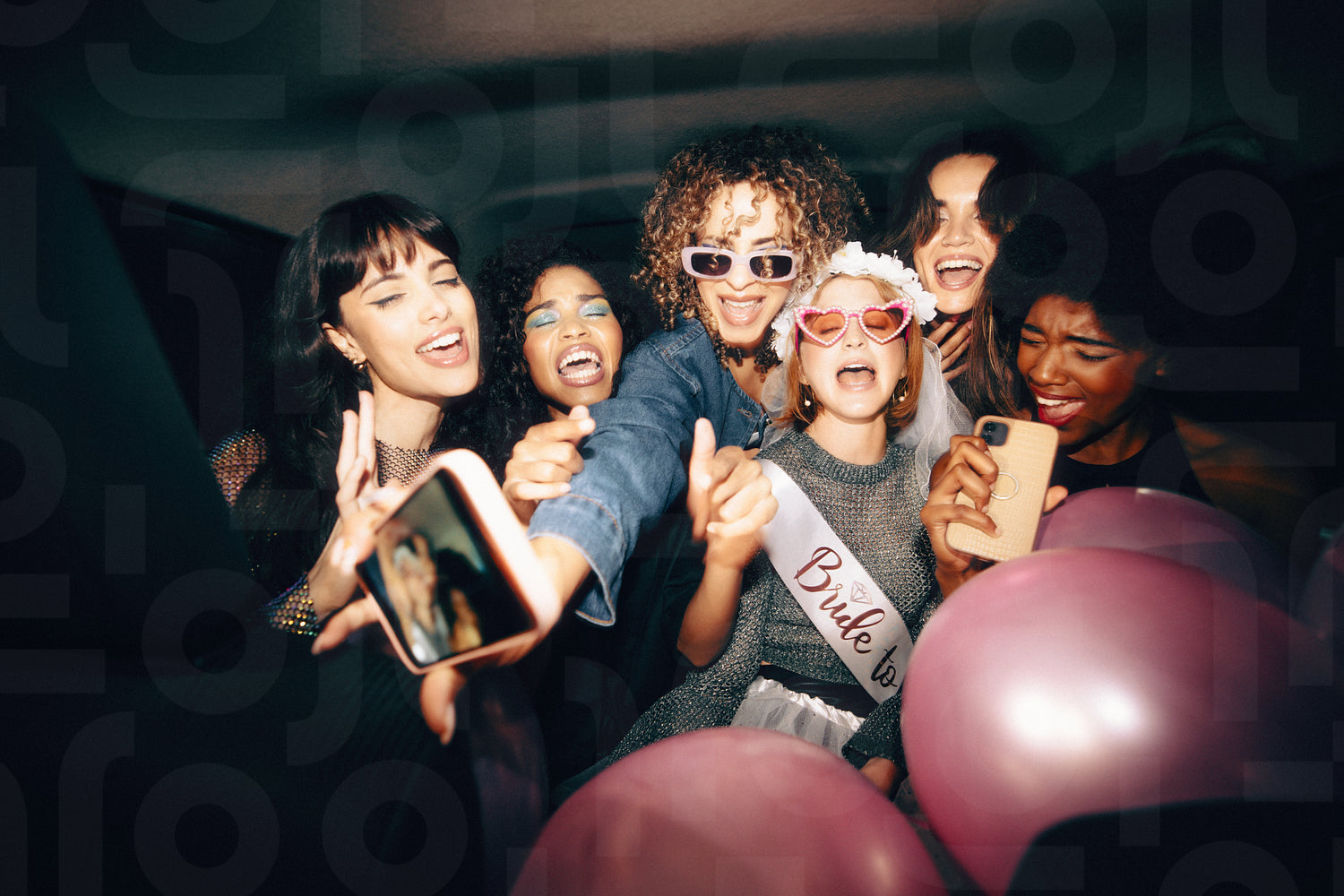 Bride-to-be celebrating with girlfriends in a joyous bachelorette party