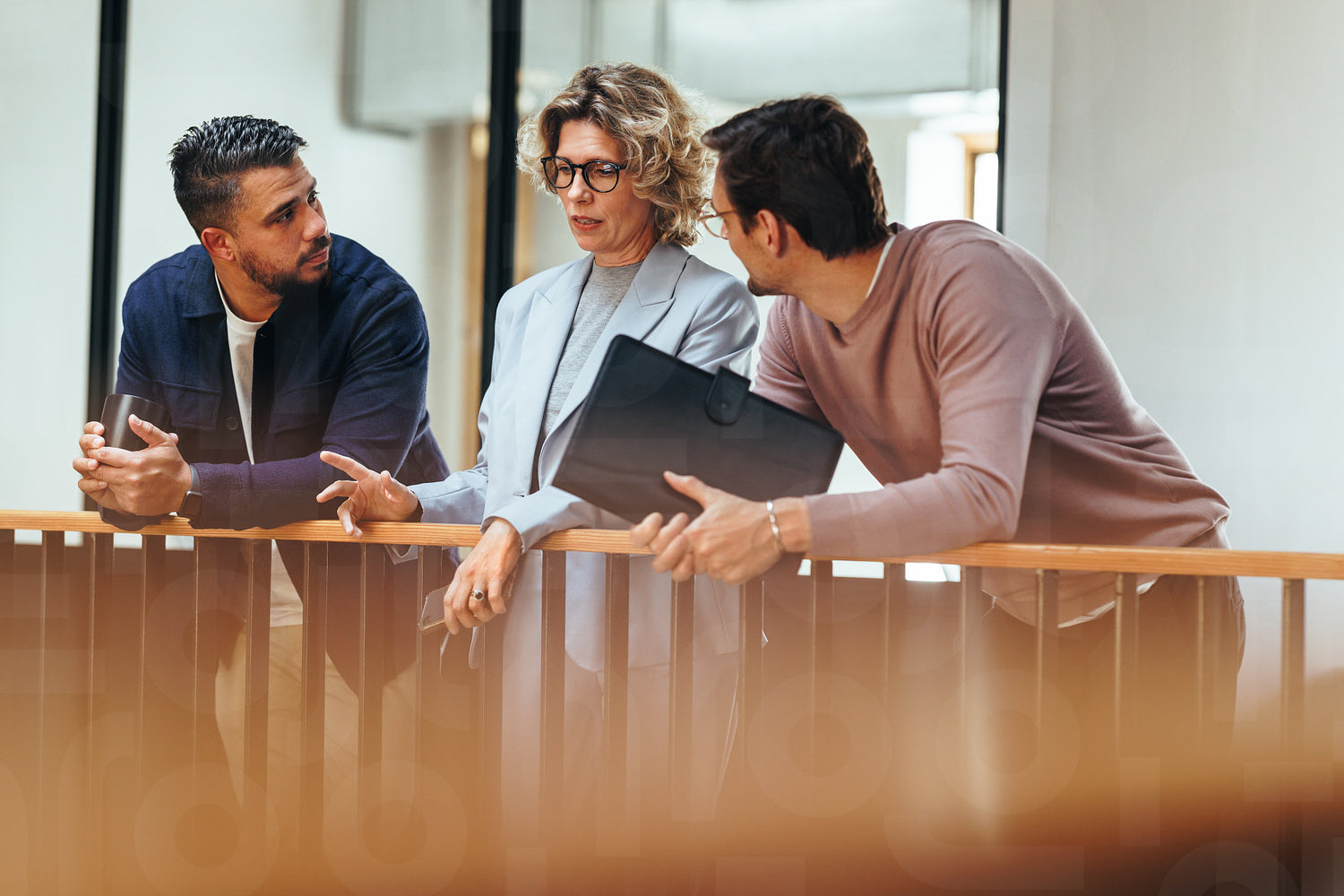 Business woman talks to her colleagues about a project in an office