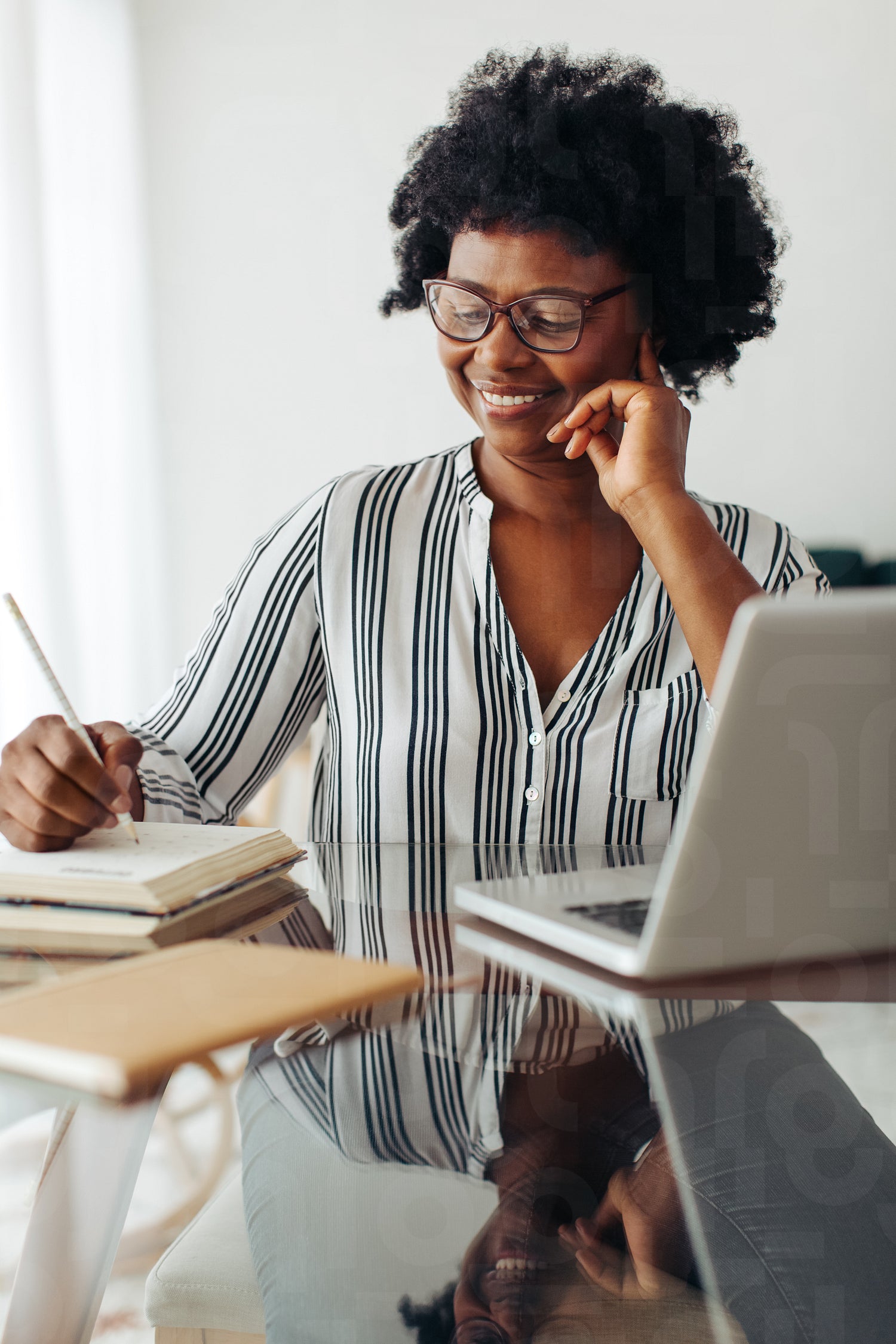 Businesswoman taking notes at home