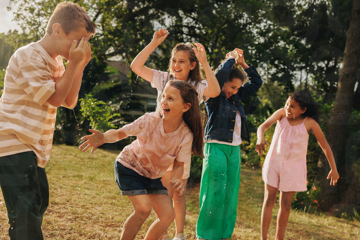 Children playing outdoors with joy and laughter on a summer day