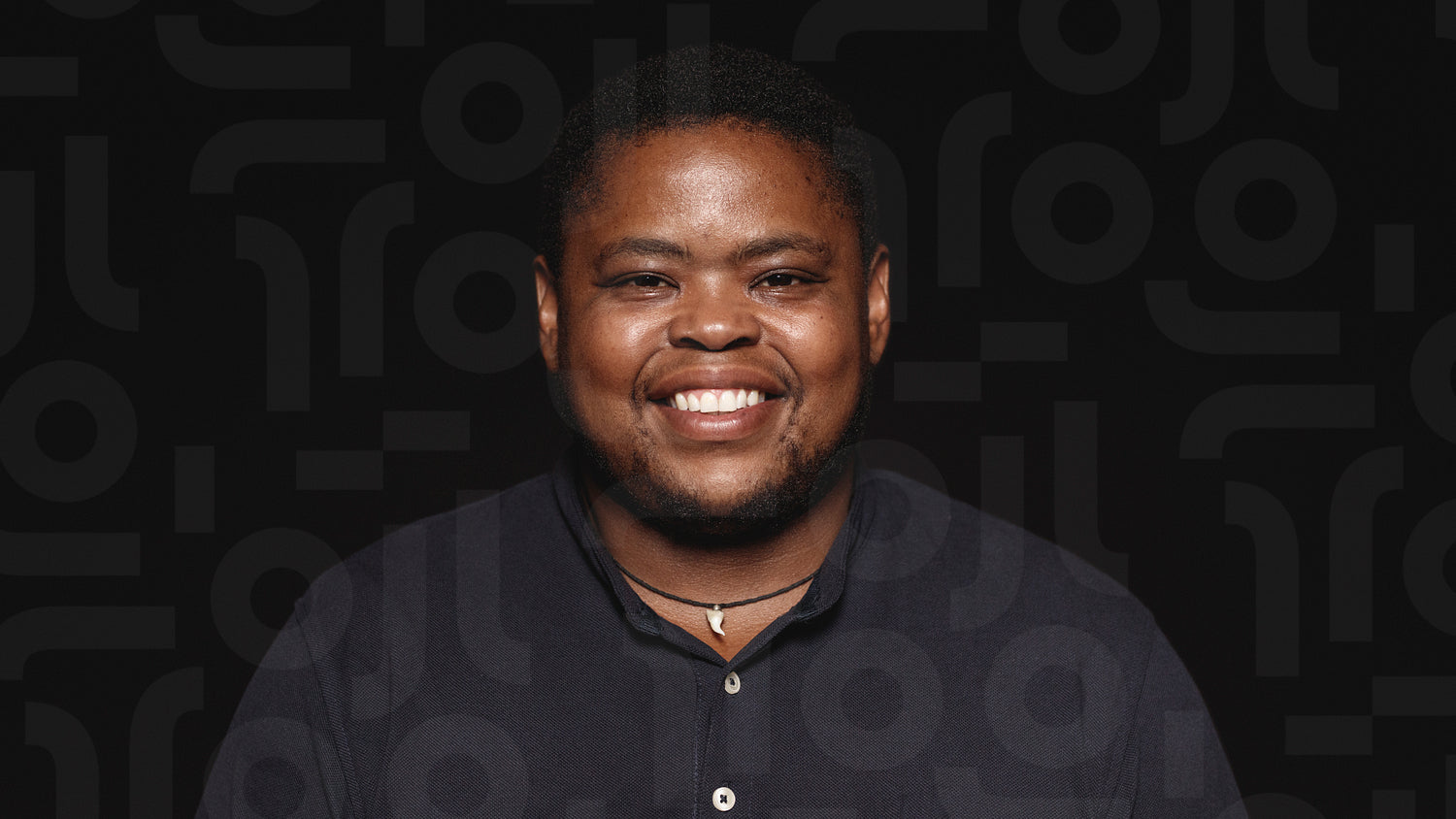 Cheerful african male isolated on black background. Portrait of a smiling african man looking at camera.