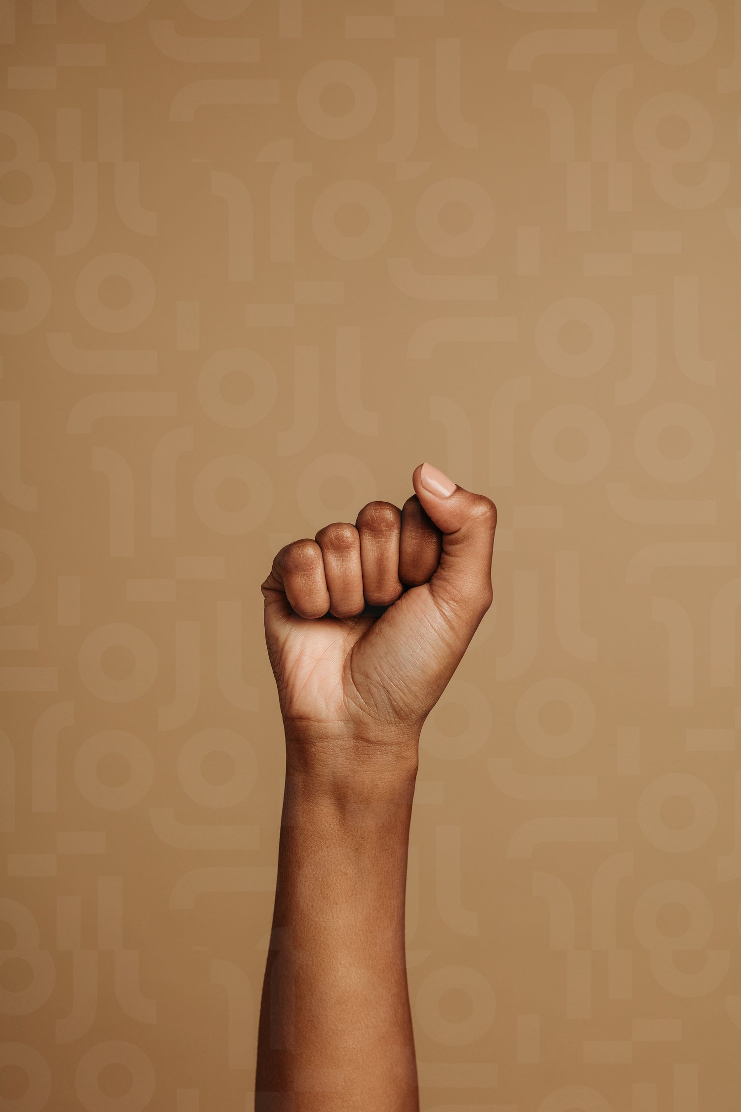 Fist held tightly against brown background. Close fist symbolizing the black lives matter movement.