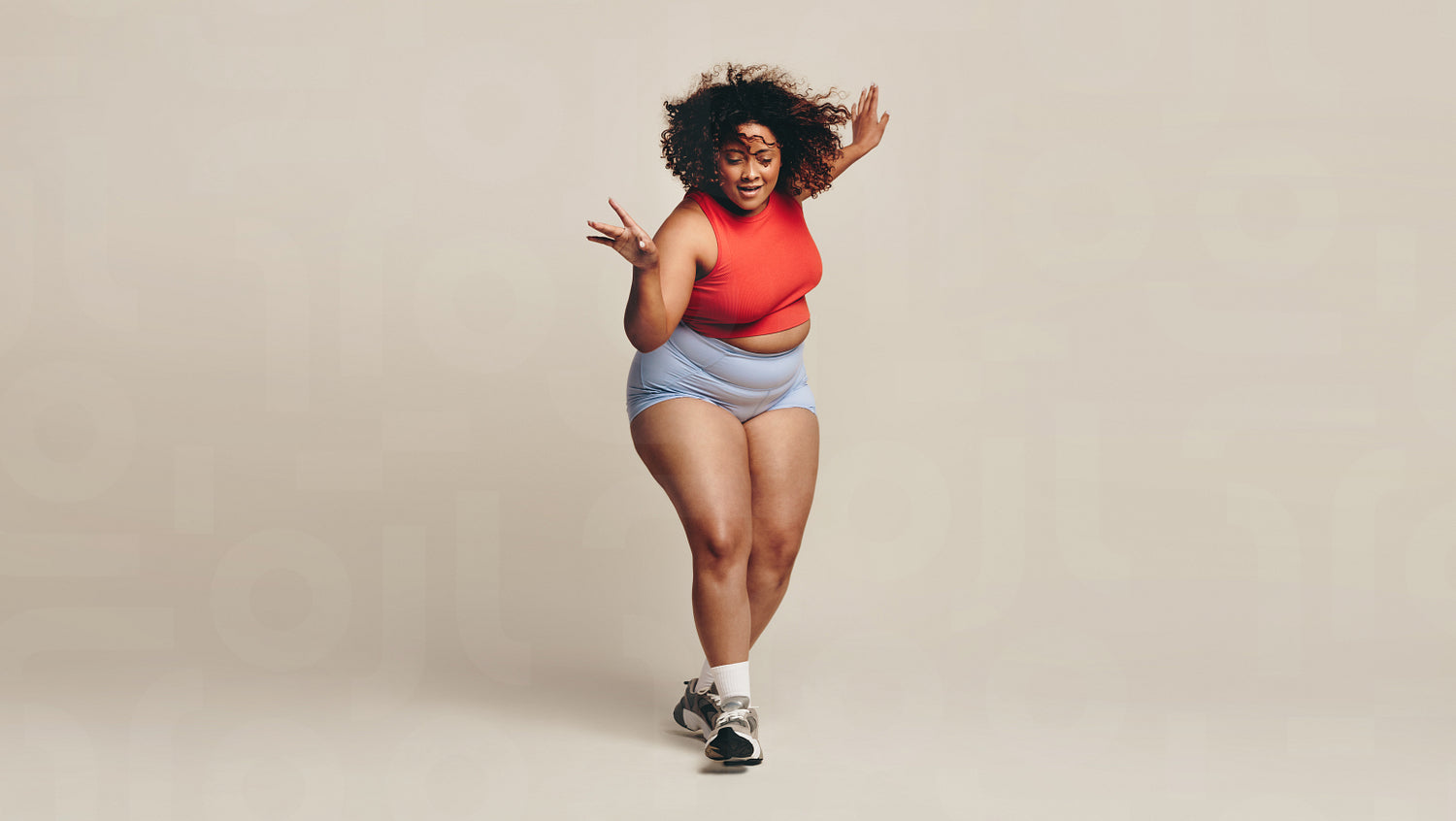 Confident body moves: Plus size woman having fun with her body in a dance workout