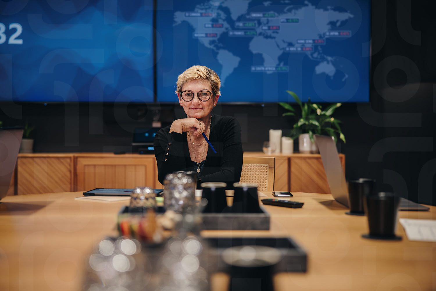 Portrait of a mature businesswoman sitting in meeting room. Female corporate professional looking at camera.