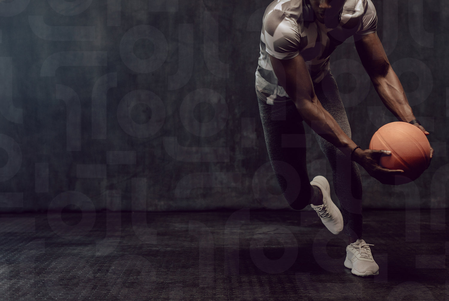 Athletic man training with a basketball. Man working out holding a basketball in hand.