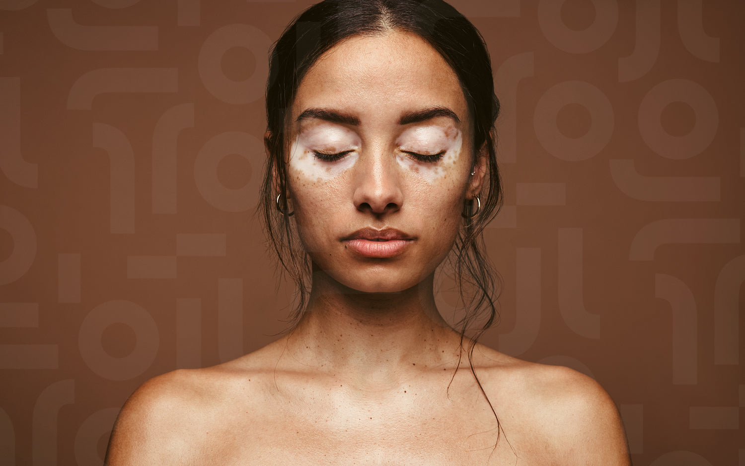 Portrait of young woman with vitiligo on brown background. Skin disorders lead to insecurities in women.