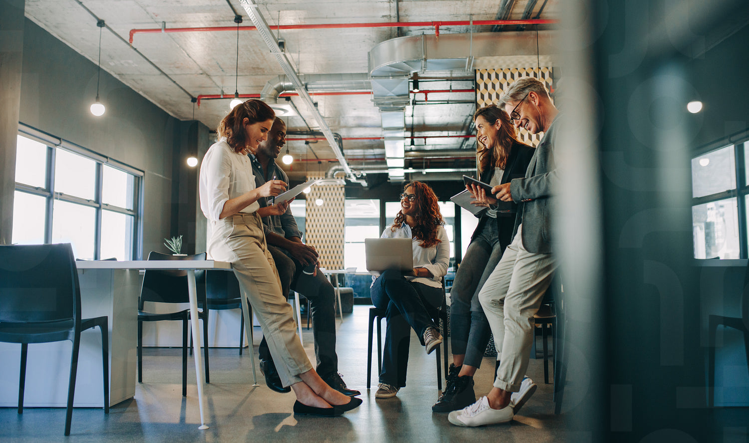 Employees meeting in a modern office. Group of multi-ethnic business people having a meeting at startup office.