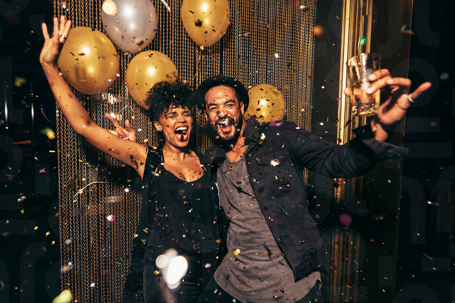 Shot of energetic couple dancing in the night club. Young man and woman having fun at pub party.