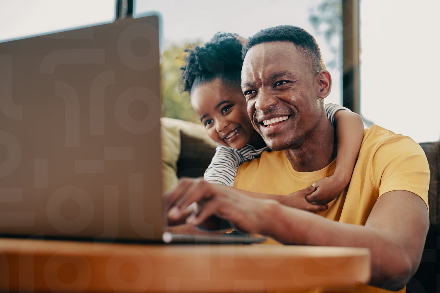 Father plays a kids movie for his daughter on a laptop. Dad in his 30’s is parenting his preschool age daughter using modern technology. Father and daughter spending some time together at home.