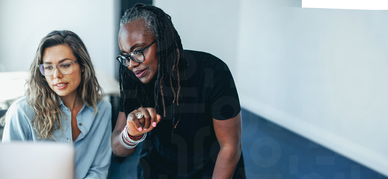 Two female entrepreneurs having a discussion as they use a computer to plan their work. Diverse business women collaborating and contributing their expertise to a project in a startup.