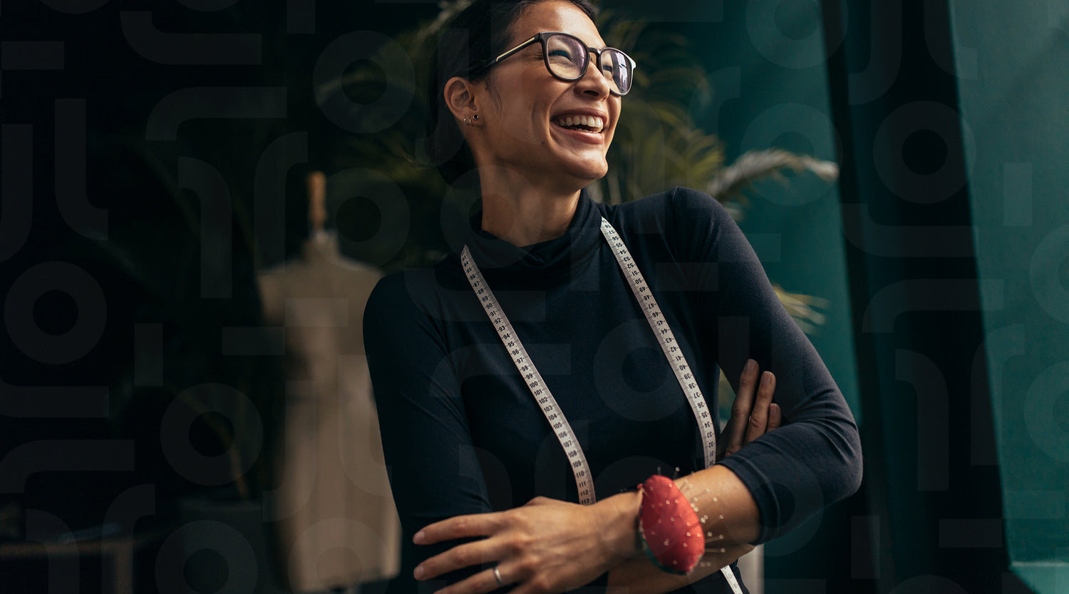 Female fashion designer laughing in her studio