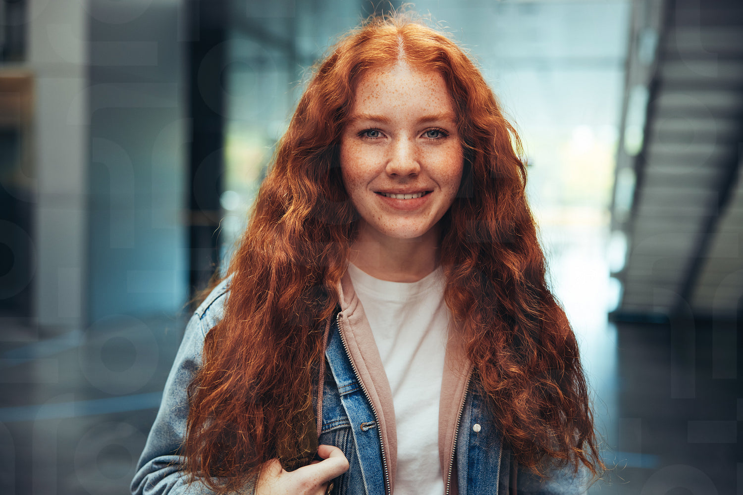 Portrait of a female student standing and smiling at camera. Young woman in high school campus