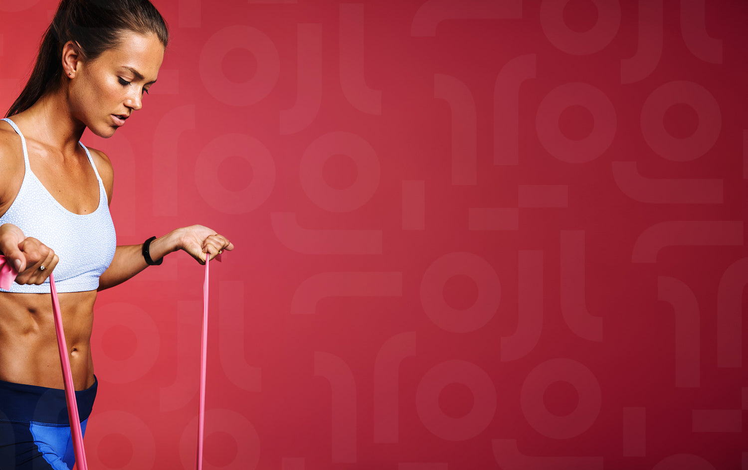 Cropped shot of female athlete training with resistance bands. Woman doing fitness workout using stretch bands.