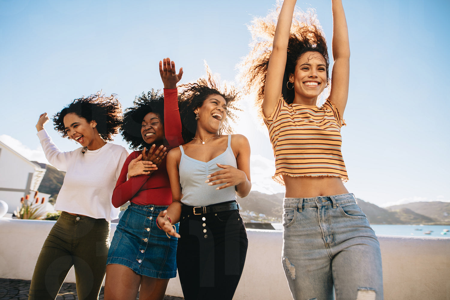 Group of girls having fun outdoors. Young women enjoying a weekend outdoors.