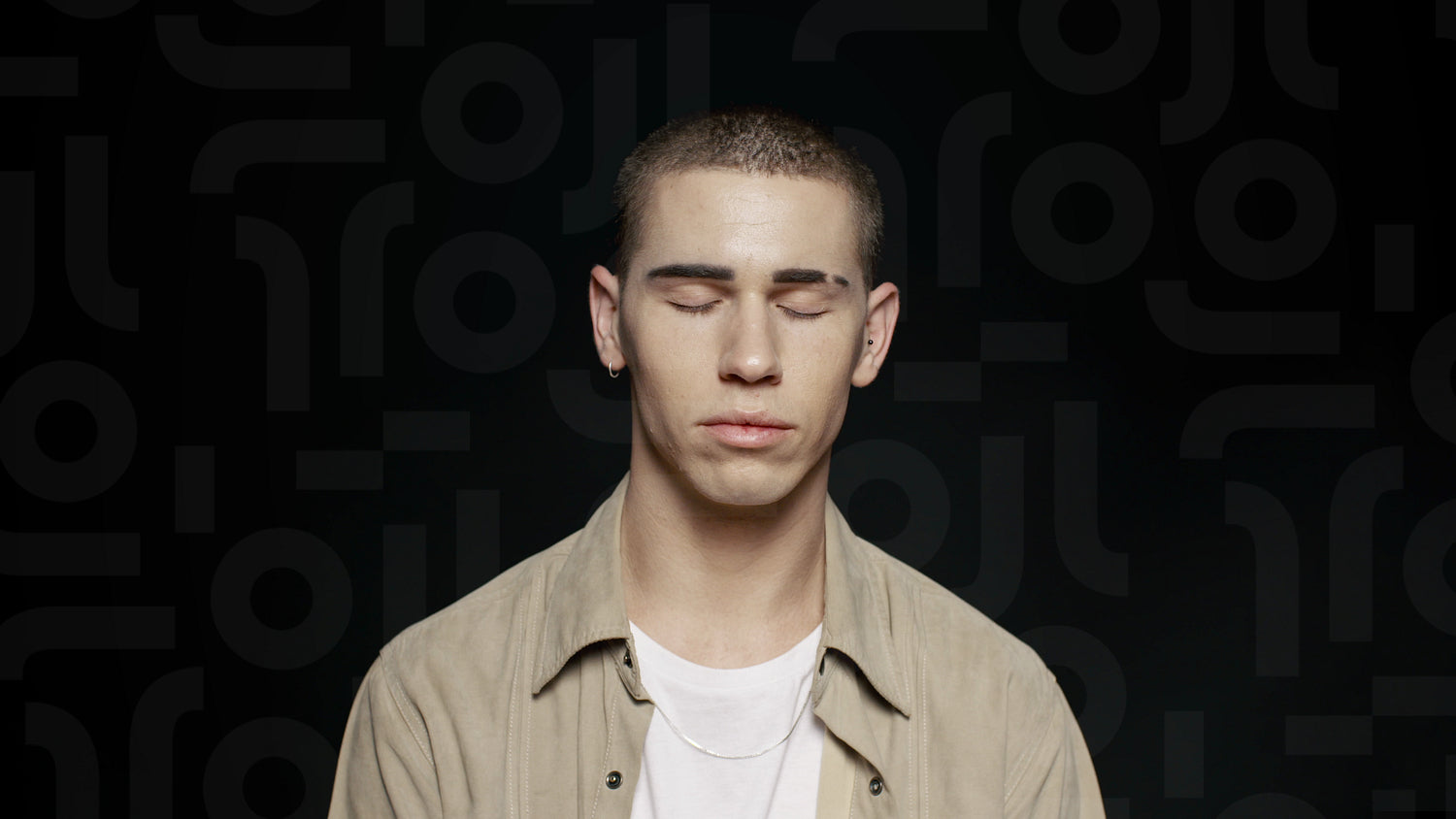 Young man with eyes closed on black background. Close up of a handsome young male with closed eyes.