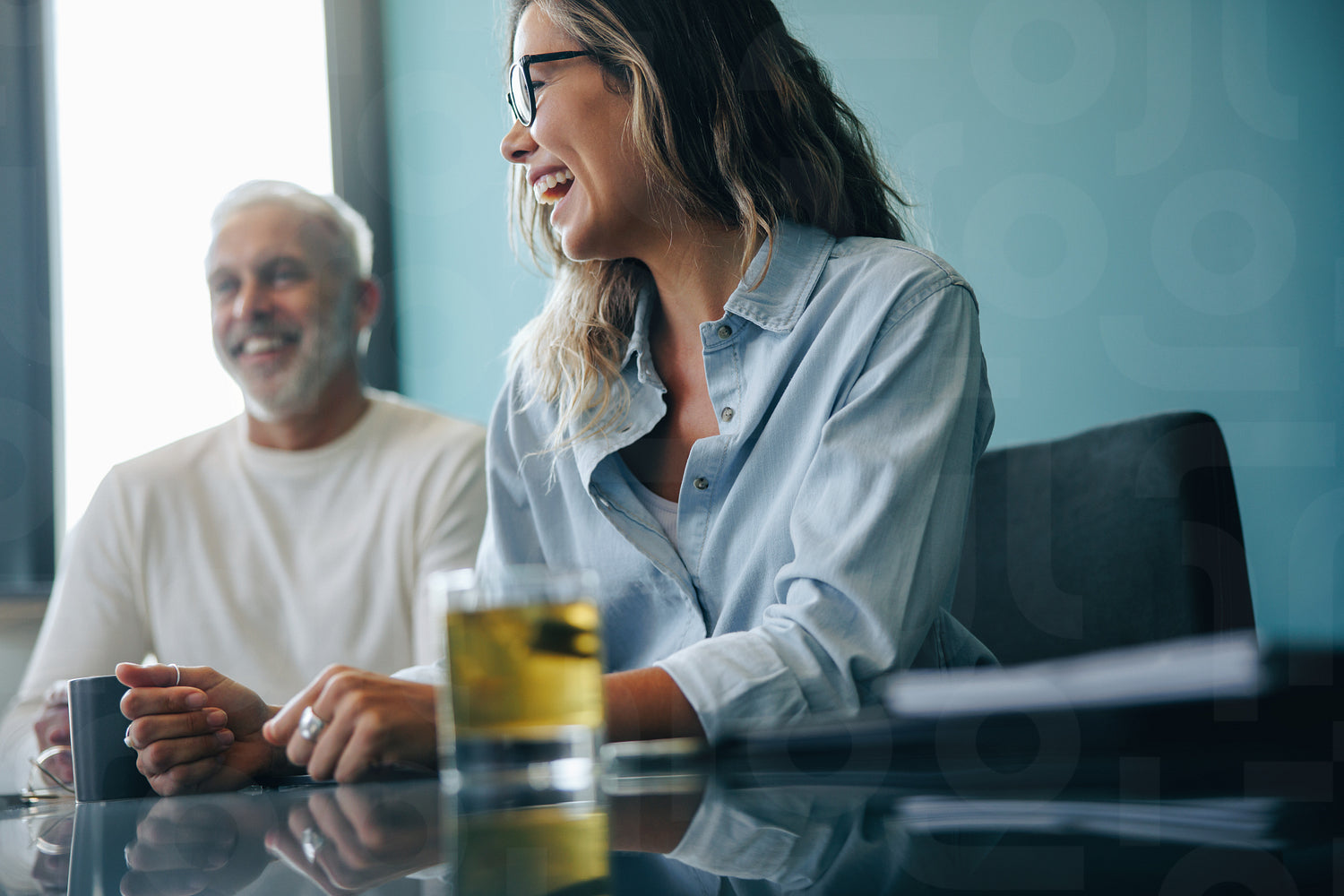 Happy business people and entrepreneurs actively participate in a meeting, engaging in productive discussions and sharing insights to achieve their project objectives.