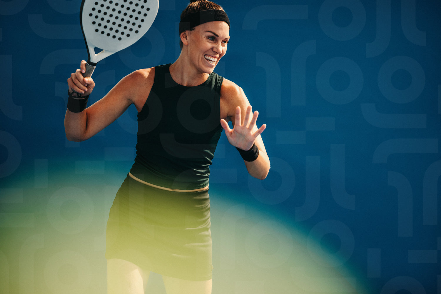 Happy female athlete enjoying playing padel tennis game